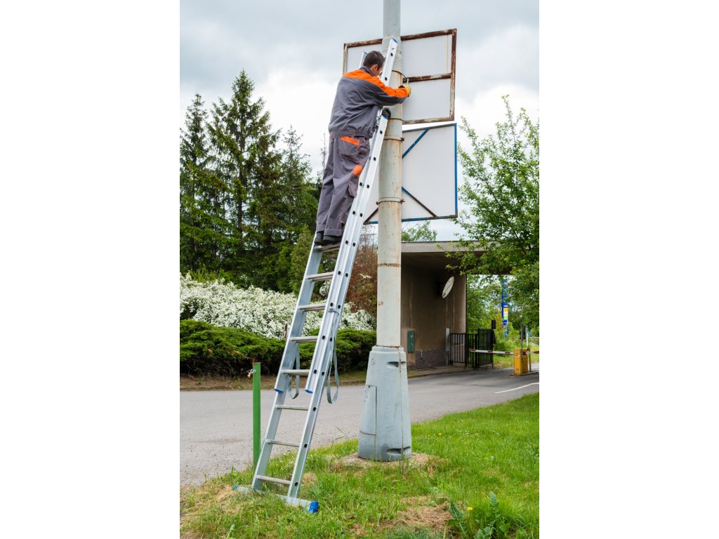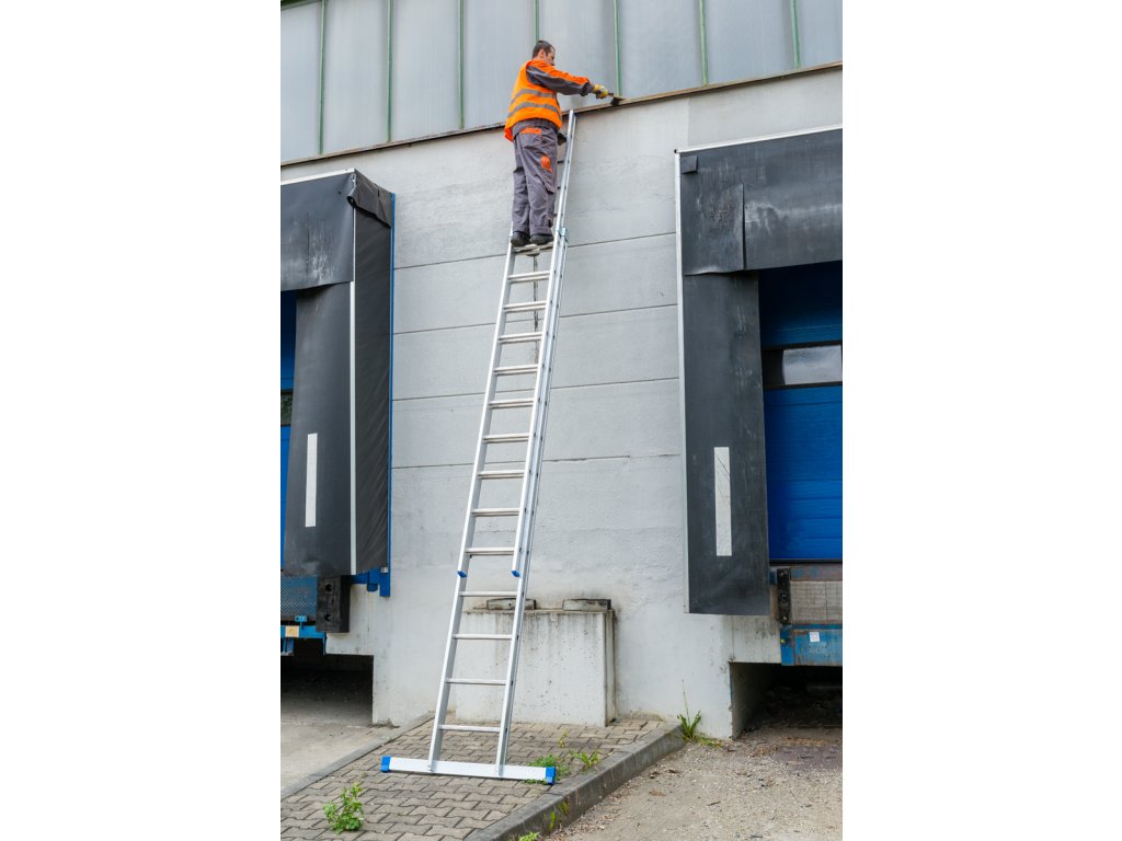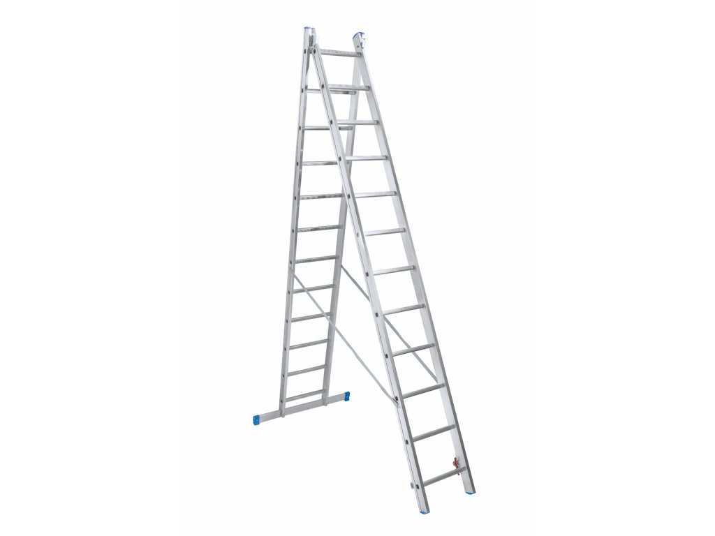 Dvoudílný profesionální žebřík 2x12 PROFI je vyroben z kvalitního odlehčeného hliníku. Díky lisovanému spojení příček s bočnicemi je zajištěná vysoká tuhost a životnost žebříku.