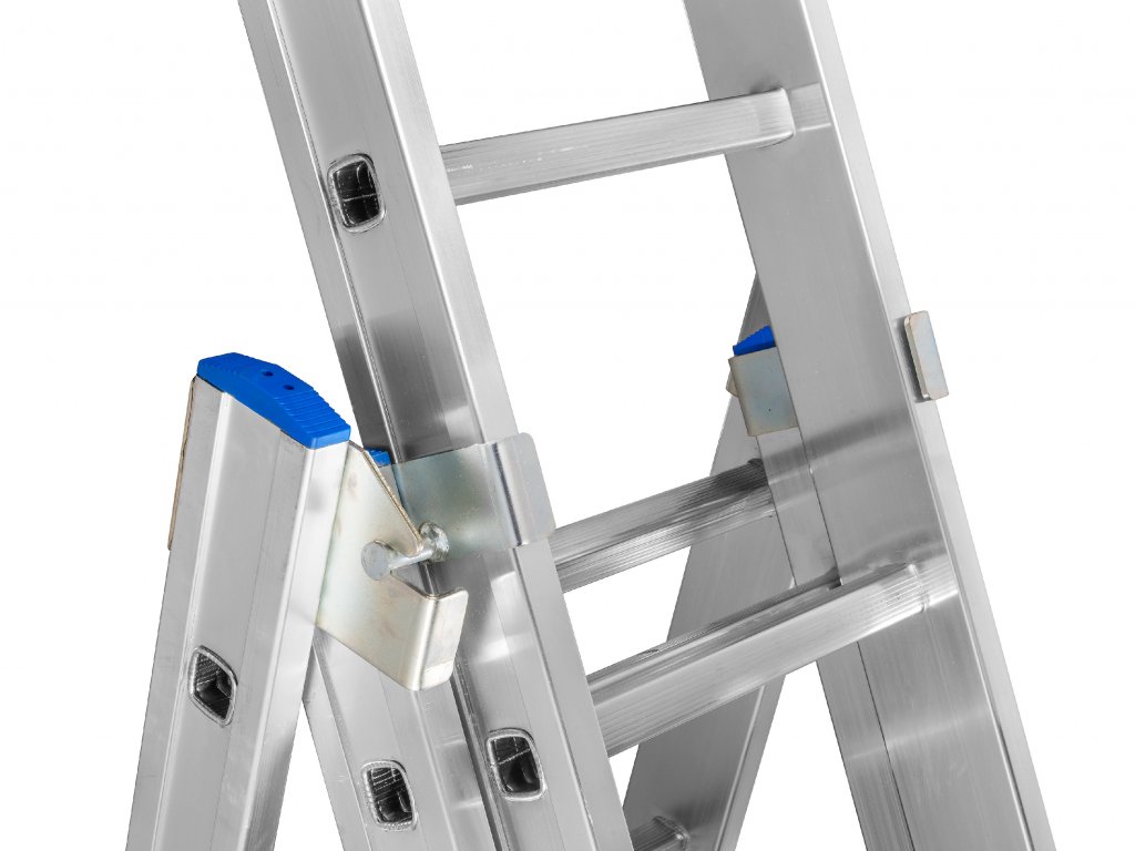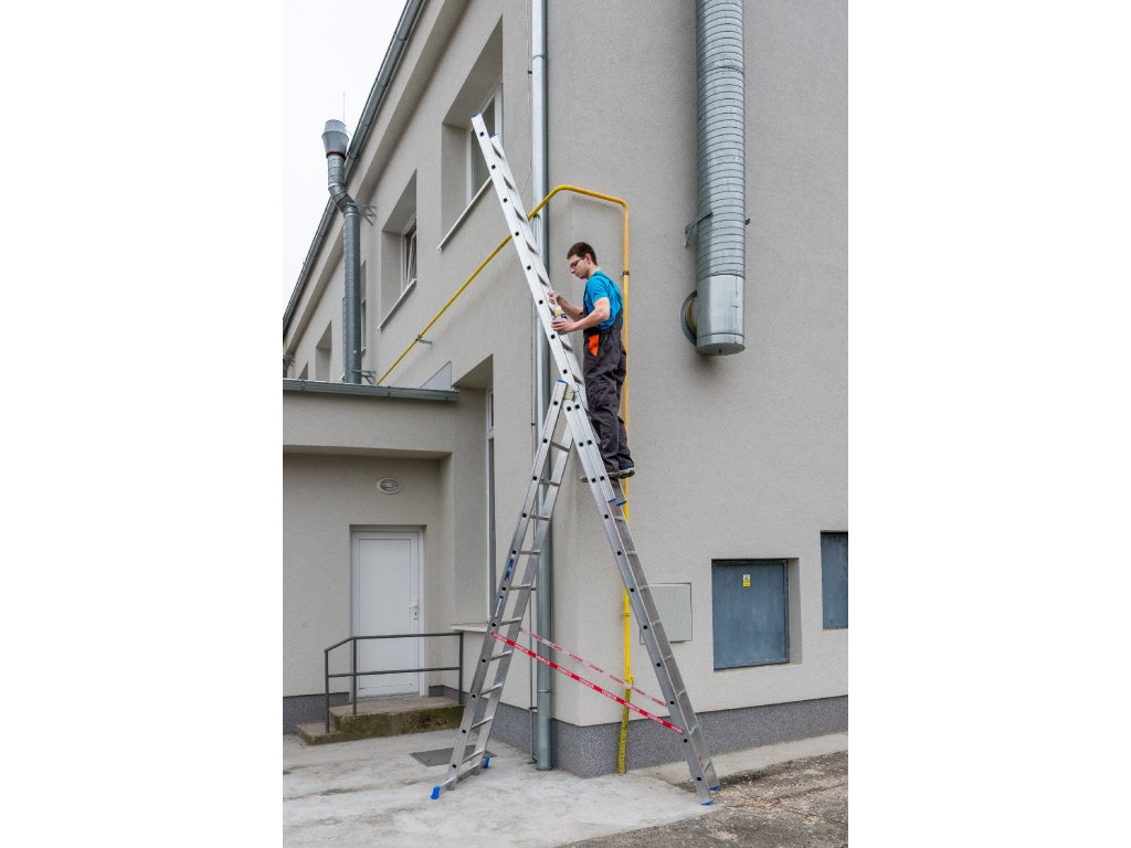 Trojdílný profesionální žebřík 3x7 PROFI je vyroben z kvalitního odlehčeného hliníku. Díky lisovanému spojení příček s bočnicemi je zajištěná vysoká tuhost a životnost žebříku.
